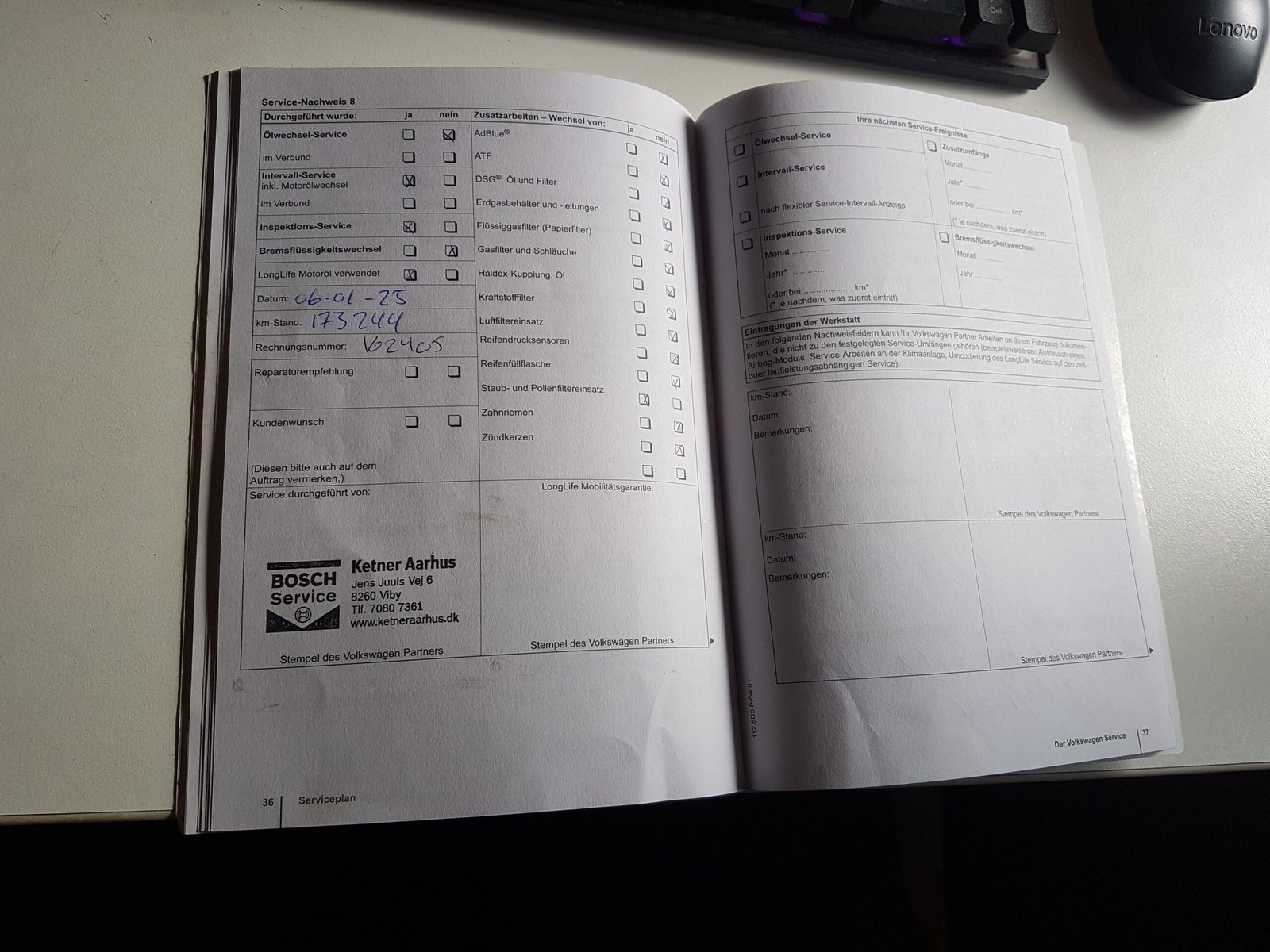 100% stort service med tjek af 42 punkter. .